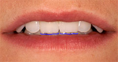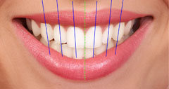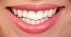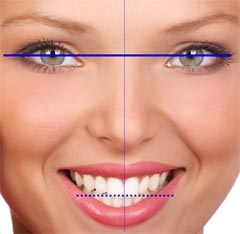 Both large incisors are symmetrical with one another and should be aligned as far as possible with the centre line of the face. The biting edges – and the entire chewing level – should, as far as possible, be parallel with the eye line (the so-called bipupillary line).